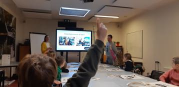 Bij de vrijwilligerscentrale / VOAR kregen de kinderen een interactieve presentatie over vrijwilligerswerk en de motivatie van mensen om zich in te zetten. Ook werd gevraagd of zij zelf wel eens iets voor een ander doen. Dat bleek zeker het geval: helpen in de tuin bij opa en oma, of iets doen voor vrienden. En wat is VOAR eigenlijk? Bewust verkeerd geschreven, want het is UUUUtrechts!