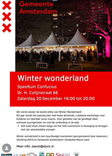 Winter Wonderland is een buurtbudget-evenement, georganiseerd door bewoners, DOCK en Gemeente Amsterdam / Stadsdeel Nieuw-West.